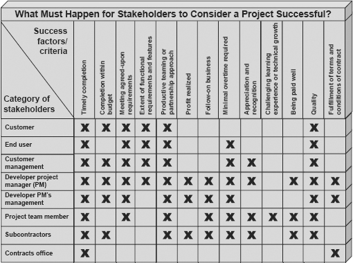 Figure 1-2 delineates each type of stakeholder’s expectations with regard to project success.