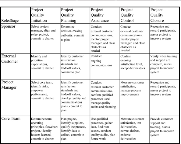 Make breakthroughs in project quality by combining project management with quality management - this books shows you how. Guiding you from project initiation through closure, the book provides a detailed stage-specific flowchart of activities correlated with appropriate tools to give you new power to meet customer expectations and institutionalize project quality.