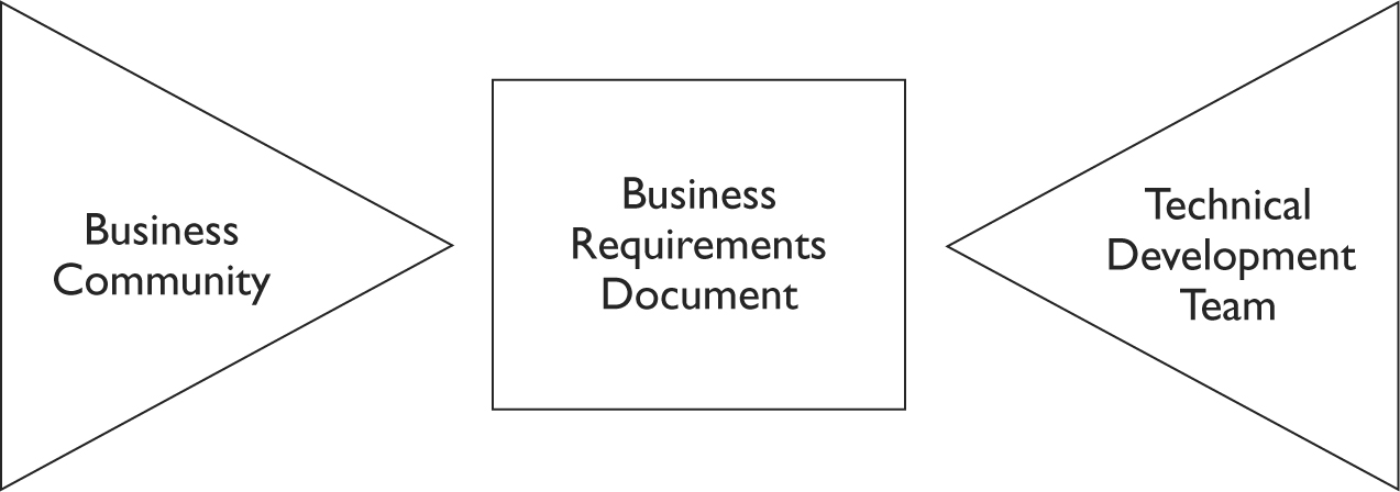 A project plan, which is often created at the same time the requirements are being documented, because it is difficult, if not impossible, to prepare a complete project plan without an understanding of the requirements and a high-level concept of the solution that is to be constructed. Figure 1-2 depicts the two primary consumers of the BRD.